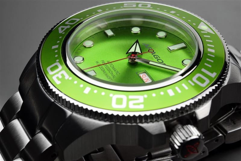 De ARAGON Divemaster Automatic 45mm A064LIM is een vrolijk en degelijk horloge. Onder de motorkap vindt u het automatische SII NH36 uurwerk, wat geproduceerd is door Seiko. Door de leuke kleur en het design is het horloge ideaal voor de lente en zomer en voor alle activiteiten in het water. Het horloge is namelijk 200 meter waterdicht, wat ervoor zorgt dat u er goed mee kan zwemmen.