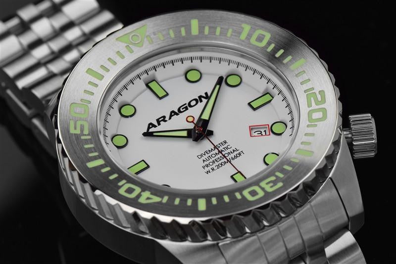 De ARAGON Divemaster EVO 50mm Super Luminova Dial A254WHT is een stijlvol en degelijk horloge met een complete wijzerplaat die licht geeft in het donker. Onder de motorkap vindt u het automatische Made in Japan SII NH35 uurwerk, wat geproduceerd is door Seiko. Door de vorm van de kast en het ontwerp zit het goed goed op eigenlijk elke pols, ondanks het formaat. Ook is het horloge geschikt voor alle wateractiviteiten; het horloge is namelijk 200 meter waterdicht, wat ervoor zorgt dat u er goed mee kan zwemmen.