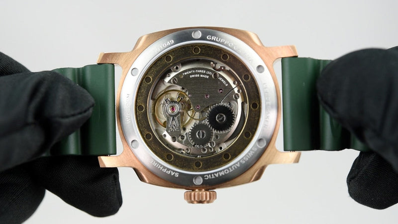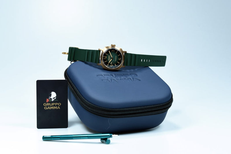 De Gruppo Gamma Peacemaker PN-09 (Pre-owned) is in goede staat en is nauwelijks gedragen. Dit horloge wordt geleverd met de volledige set met doos, banden tool en garantiekaart (9-12-2023).