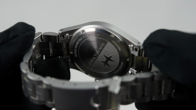 De Hamilton Khaki Field Mechanical H69439511 (Pre-owned) is een horloge in prima staat met normale draagsporen en wordt geleverd als de volledige set met doos en papieren (20/01/2020). Het horloge zit op een Hamilton stalen band, twee leren banden zijn inbegrepen. De originele leren Hamilton band is in gedragen staat, de aftermarket leren band is in prima staat.