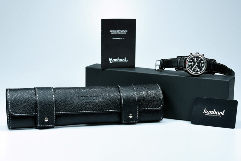 De Hanhart Pioneer 417 ES (Pre-owned) is een horloge in goede staat dat nauwelijks is gedragen en wordt geleverd als de volledige set met doos en papieren (07/2023).