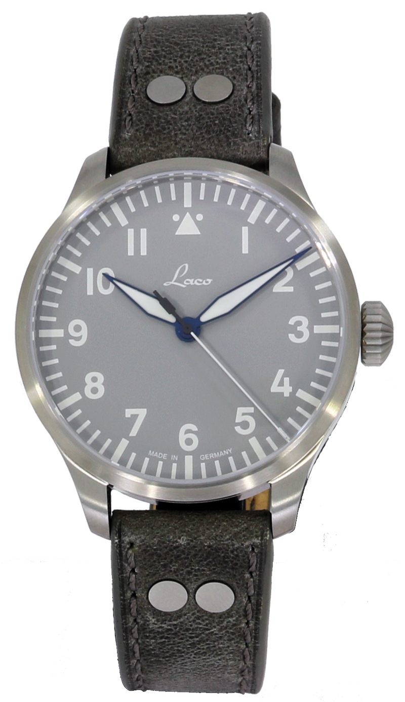 De Laco Augsburg 42 Grau 862158 (Pre-owned) is een gloednieuw horloge, met tags en folies en wordt geleverd met de doos en papieren.