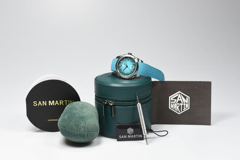 De San Martin SN0144-GX (Pre-owned) is een horloge in nieuwstaat en komt met de volledige set met doos en papieren (geen datum).