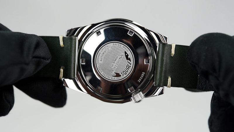 De Squale 50 Atmos Green 1521 1521PROFGR.PVE (Pre-owned) is een horloge in prima staat met kleine draagsporen en wordt geleverd als de volledige set.