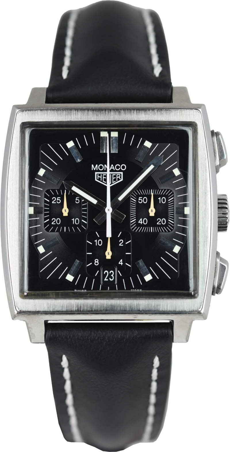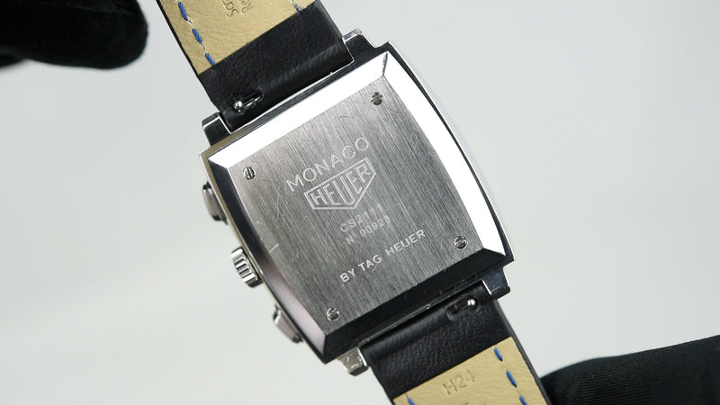 De TAG Heuer Monaco CS2111 (Pre-owned) is een horloge in prima staat met normale draagsporen en komt zonder doos of papieren. Het horloge zit op een nieuwe Hirsch leren band met de originele TAG Heuer gesp.