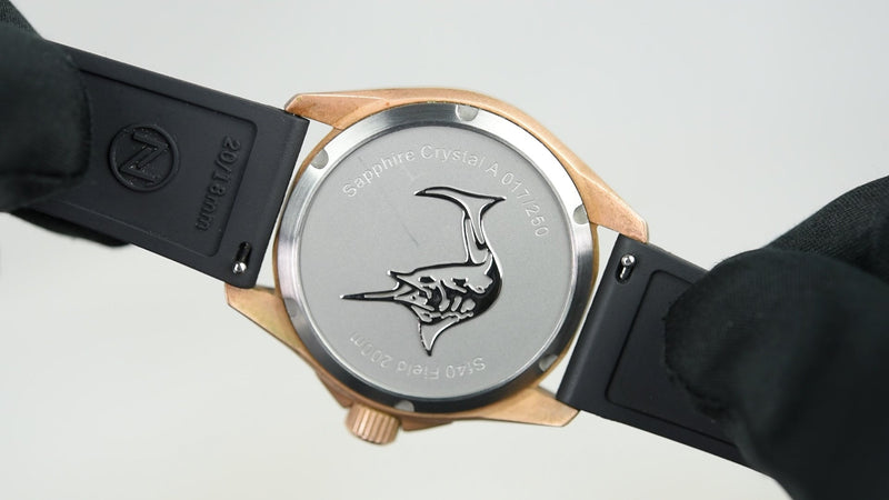 De Zelos Swordfish Field 38mm Bronze Meteorite (Pre-owned) is een horloge in goede staat dat amper is gedragen en wordt geleverd als volledige set met doos en getekende garantiekaart (10-2023).