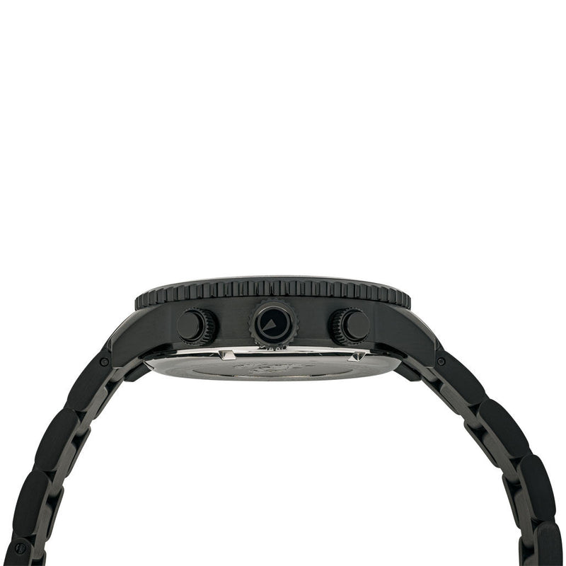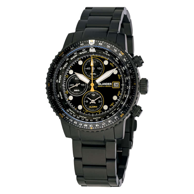 Het horloge is uitgerust met een Epson YM62A quartz chronograaf uurwerk, dat bovendien beschikt over een alarmfunctie. Maar daar houdt het niet op: natuurlijk is het horloge voorzien van saffierglas, een bidirectionele bezel waarmee je met behulp van de bijbehorende schalen snelheden kunt berekenen, én een indrukwekkende waterdichtheid tot 200 meter (iets wat zeldzaam is bij chronografen!). De kast en band hebben een sterke, duurzame, zwarte IP coating.