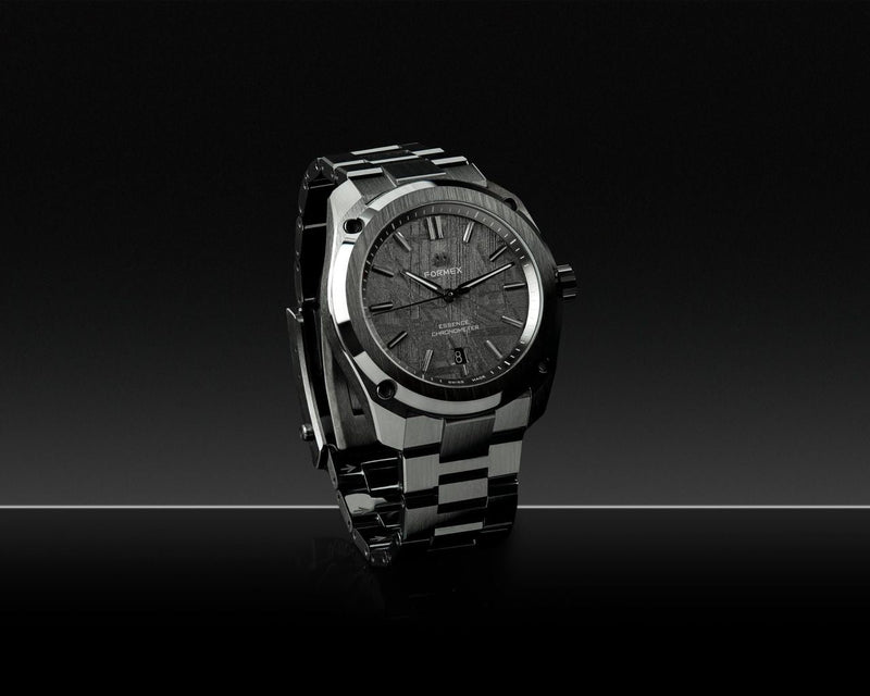 De Formex Essence Ceramica COSC 41mm Dark Matter is een fenomenaal, stijlvol en extreem comfortabel high-end Swiss Made horloge. Om te beginnen zijn de 41mm, kast, band en sluiting allemaal gemaakt van Zirconium Oxide Ceramic (Zr2), een keramisch materiaal dat extreem hard en krasbestendig is.