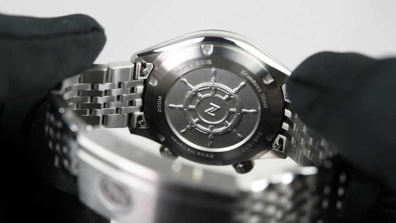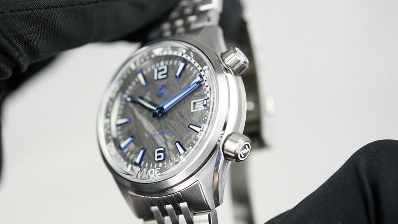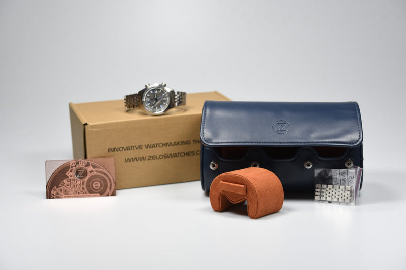 De Zelos Helmsman Meteorite (Pre-owned) is een horloge in nieuwstaat en komt met de volledige set met doos en papieren (07/2025).