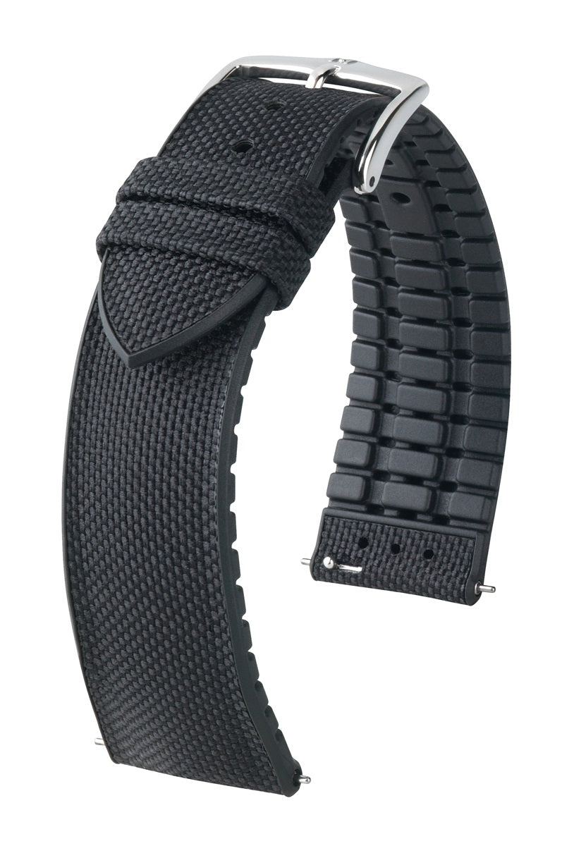 De Hirsch Arne Black 20mm is een hoge kwaliteit band van Kalfsleer buitenkant - Premium Caoutchouc binnenkant met een diameter van 20mm bij de kast en 18mm bij de gesp. De fabrikant is Hirsch.