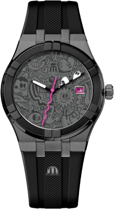 De Maurice Lacroix Aikon Quartz Date 40mm Wotto Limited Edition AI1108-PVL20-090-2 is een zeer bijzonder horloge, dat direct opvalt door het bijzondere ontwerp en de fenomenale wijzerplaat ontworpen door 'Wotto', een beroemde Engelse street artist. Dit combineert het klassieke Aikon design met zijn kunst, wat op de juiste manier helemaal klikt. Daar naast is het ook een horloge dat elke dag voor u klaar zal staan. Dit horloge kan met u mee tijdens het zwemmen, met een waterdichtheid van 100 meter, en er vervolgens geweldig uitzien onder de mouw van een overhemd op kantoor, dankzij de dikte van slechts 9mm.