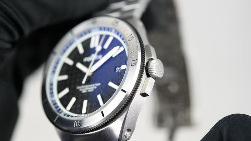 De Fortis Marinemaster M-44 COSC Ocean Blue (Pre-owned) is een horloge in goede staat en is nauwelijks gedragen en komt met de volledige set met doos en papieren (04/2024).