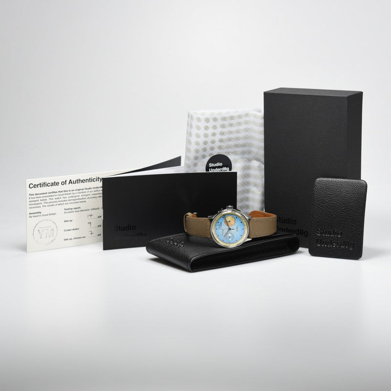 De Studio Underd0g 01SERIES Desert Sky Gen3 (Pre-owned) is een horloge in goede staat en is nauwelijks gedragen en komt met de volledige set met doos en papieren (geen datum).