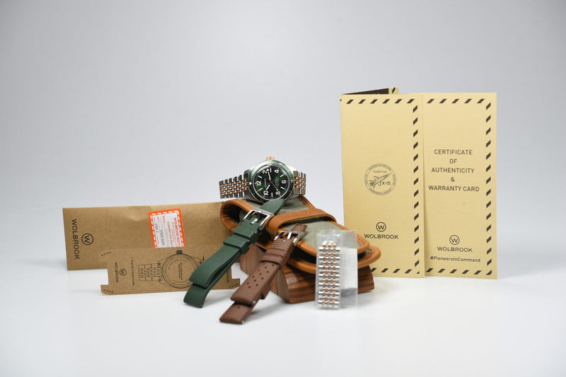 De Wolbrook Skindiver Automatic Two-Tone Green (Pre-owned) is een horloge in nieuwstaat en komt met de volledige set met doos en papieren (03/02/2025). Ook komt het horloge met 2 extra rubberen banden.