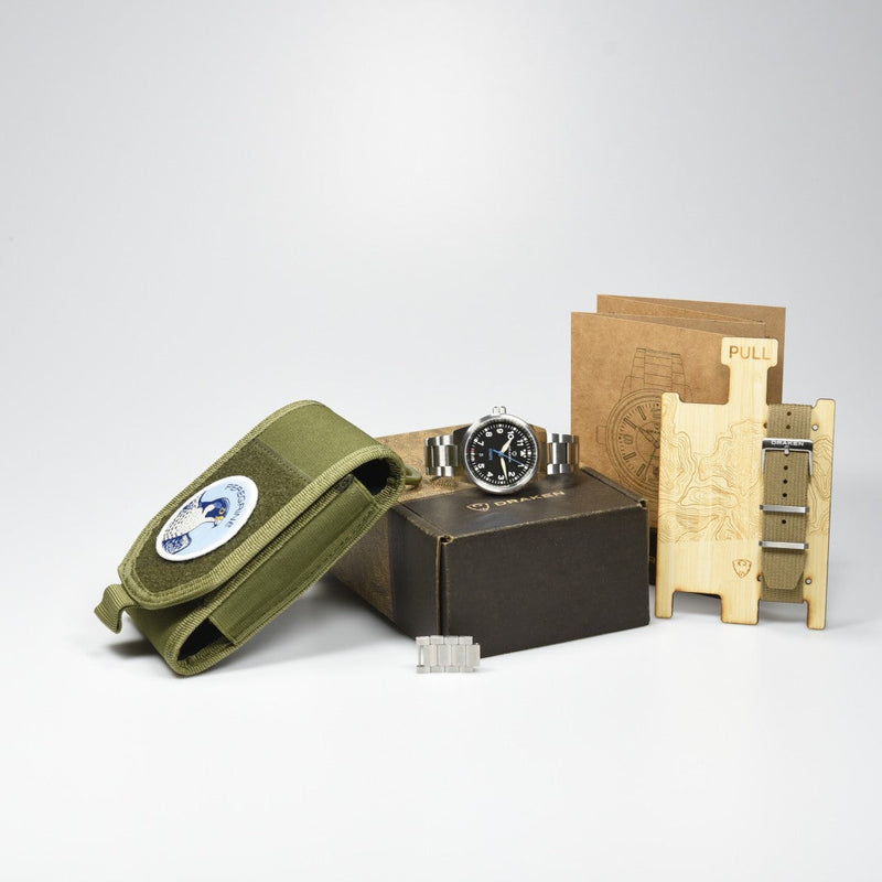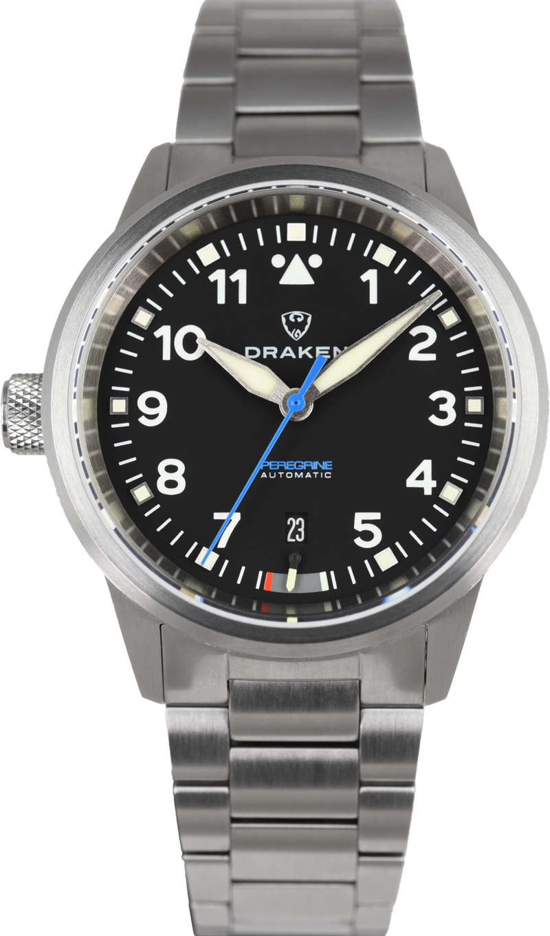 De Draken Peregrine Version B Black (Pre-owned) is een horloge in goede staat en is nauwelijks gedragen en komt met de volledige set met doos en papieren (5/6/25).