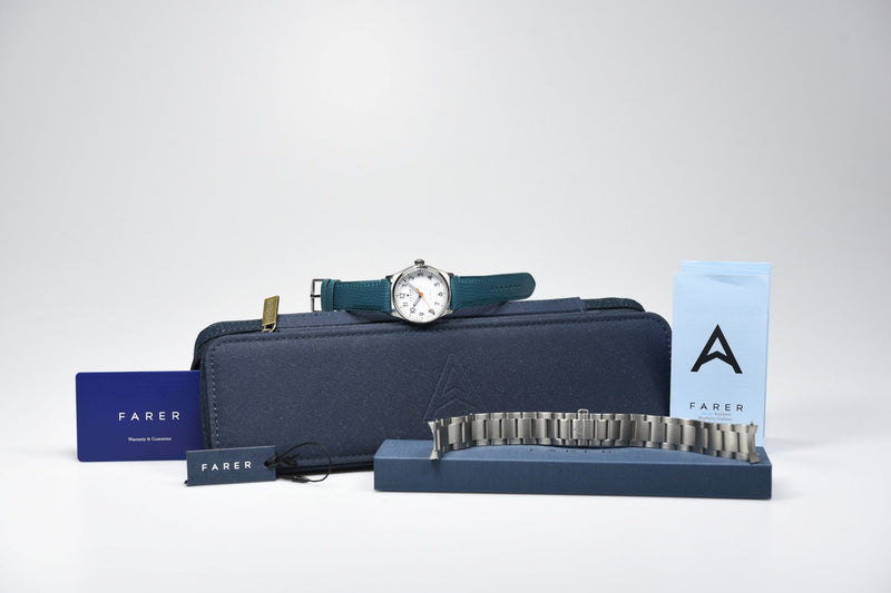 De Farer Resolute II 36mm (Pre-owned) is een horloge in goede staat en is nauwelijks gedragen en komt met de volledige set met doos en papieren (6-2-2024). Ook zit de Farer stalen band bij de set.