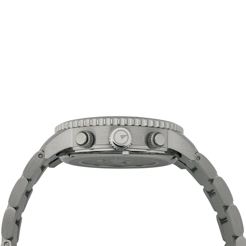 Het horloge is uitgerust met een Epson YM62A quartz chronograaf uurwerk, dat bovendien beschikt over een alarmfunctie. Maar daar houdt het niet op: natuurlijk is het horloge voorzien van saffierglas, een bidirectionele bezel waarmee je met behulp van de bijbehorende schalen snelheden kunt berekenen, én een indrukwekkende waterdichtheid tot 200 meter (iets wat zeldzaam is bij chronografen!).