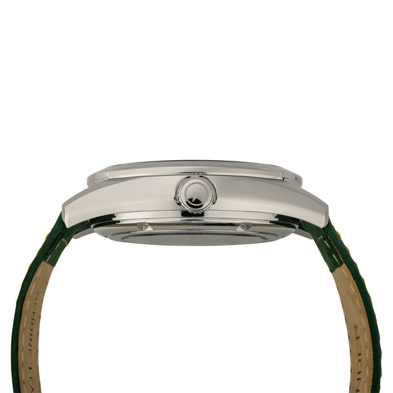 En als jij dynamisch bent, dan is dit horloge dat ook. Onder de motorkap is het automatische NH34-uurwerk, dat beschikt over een extra wijzer die een tweede tijdzone aangeeft. Deze wijzer kan los worden ingesteld en uitgelijnd met de 24-uursring op de wijzerplaat, zodat je tijdens het reizen in één oogopslag de tijd in een andere tijdzone kunt zien.