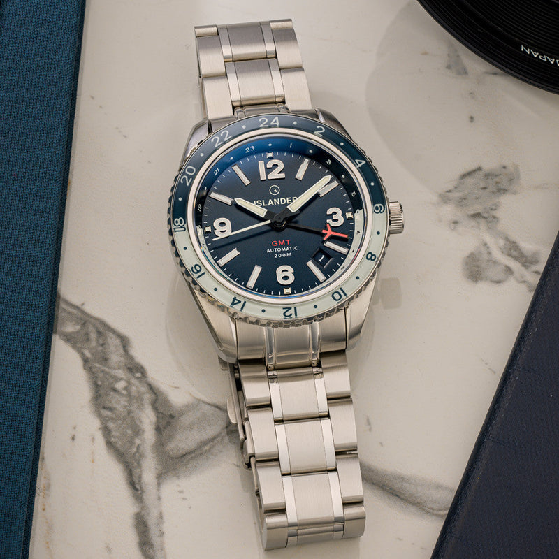 De Islander Watch Republic Traveler GMT Blue Dial #ISL-238 is een fantastisch horloge voor iedere serieuze reiziger!