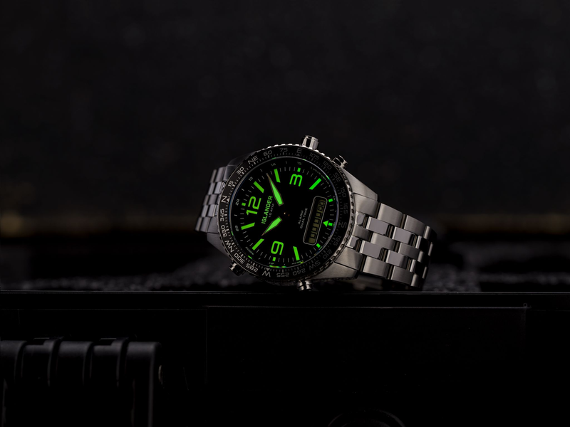 De Rocky Point is misschien wel het ultieme toolwatch dat Islander produceert. Met zijn overvloed aan functies en praktische eigenschappen zou u bijna vergeten dat het ook nog eens een bijzonder fraai horloge is. In plaats van te kiezen voor een volledig digitaal horloge, behoudt dit model zijn horlogetechnische authenticiteit.