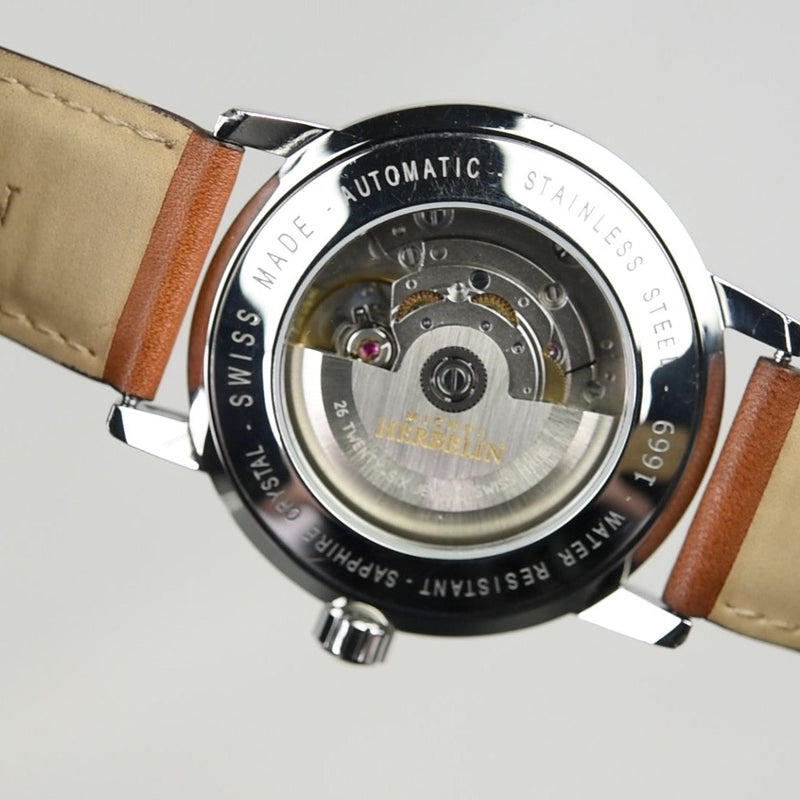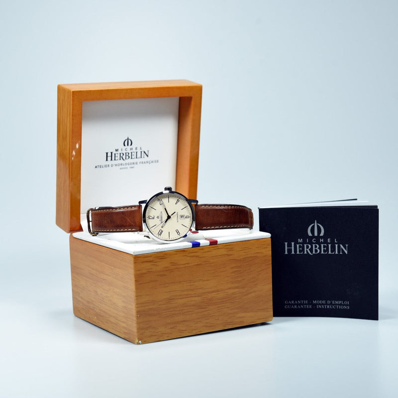 De Michel Herbelin City Automatic 1669/07GO (Pre-owned) is een horloge in prima staat met normale draagsporen en komt met de volledige set met doos en papieren (09/02/2022).