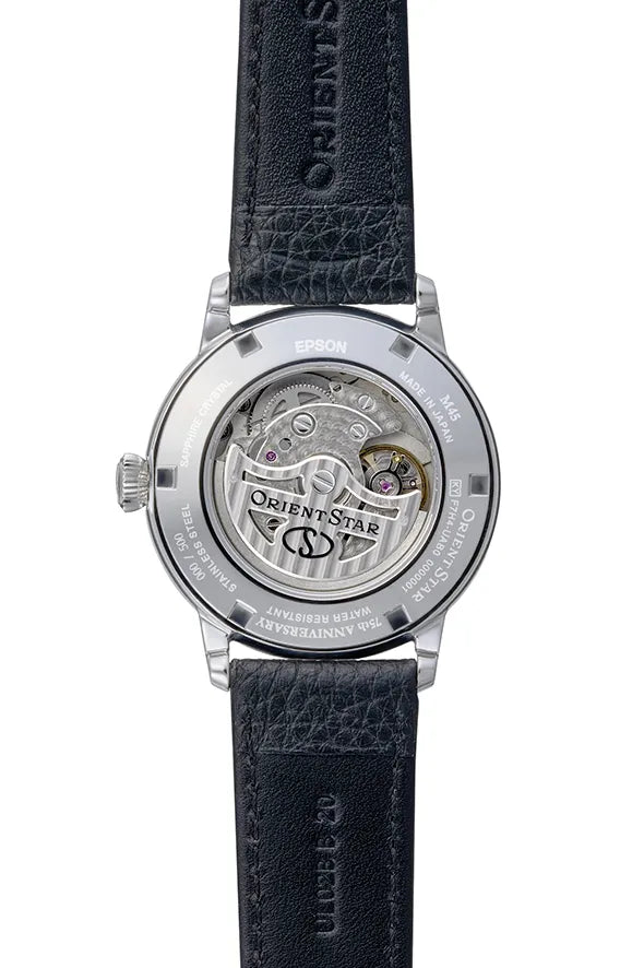 Zoals u van een Orient Star mag verwachten, zijn de kast, het uurwerk en de afwerking van zeer hoog niveau. Details zoals saffierglas (met SAR-coating) en een hoogwaardige leren band met vouwsluiting zijn dan ook standaard aanwezig. Het in-house Orient F7H44 uurwerk beschikt over een gangreserve-indicator en een kleine seconde en is zichtbaar door de transparante achterdeksel. De gangreserve bedraagt circa 50 uur.