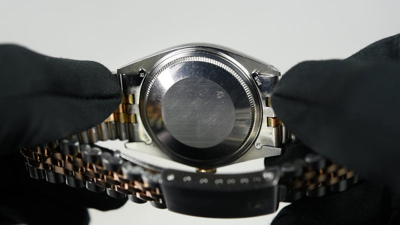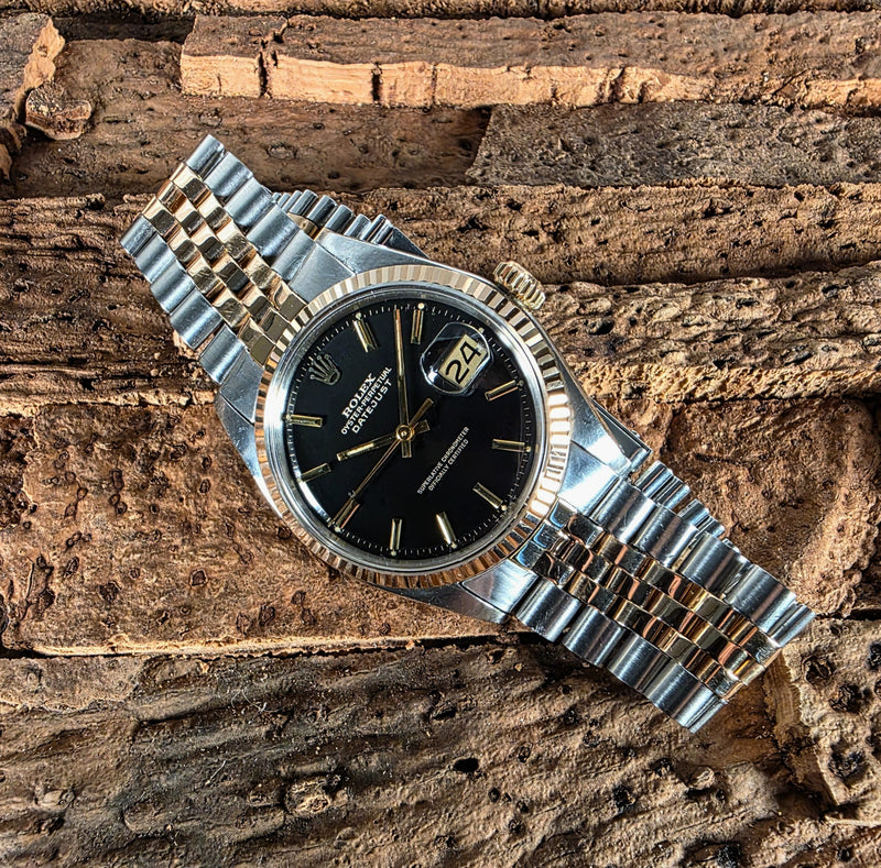 De Rolex Datejust 1601 (Pre-owned) is een horloge in goede vintage staat met normale draagsporen en komt als watch only (1973). Het is goed om te vermelden dat dit horloge van origine staal/rose goud is. De band en lunette zijn dat nog steeds, maar in de loop der jaren zijn tijdens onderhoud 1 van de eindschakels en de wijzerplaat en wijzers vervangen voor geel gouden varianten. Rose gouden Rolex modellen zijn behoorlijk zeldzaam en in daarom werd er vaker voor een geel gouden optie gekozen als onderdelen niet meer beschikbaar waren.
