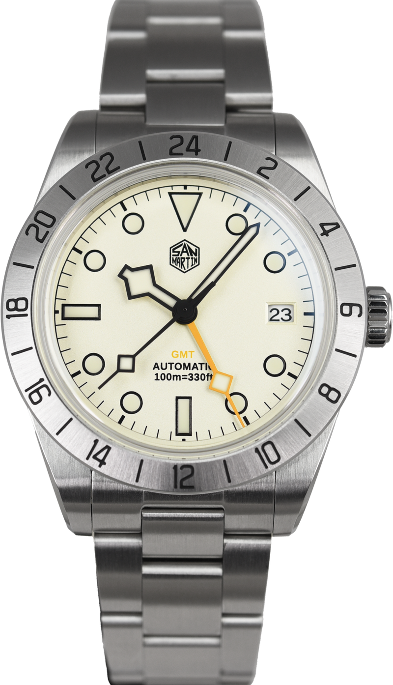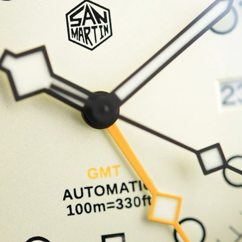 De San Martin SN0054-G-B1 (Pre-owned) is een horloge in goede staat en is nauwelijks gedragen en komt met de doos maar geen papieren.