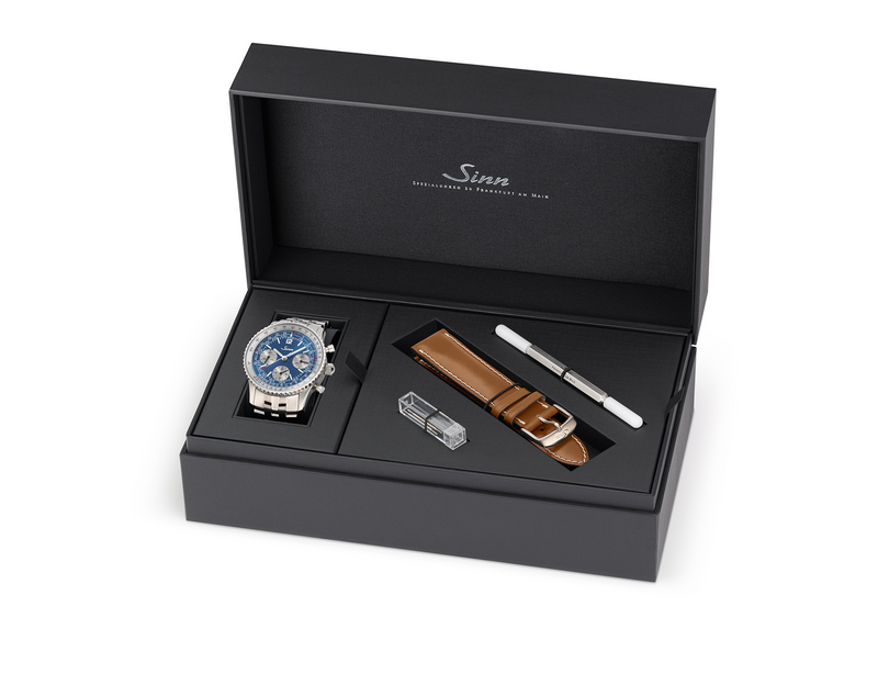 Dit speciale model, ter ere van 65 jaar Sinn (waarbij de Navigation Chronograph was geintroduceerd om 35 jaar Sinn te eren), is gelimiteerd tot slechts 500 stuks en komt met een extra lederen band.