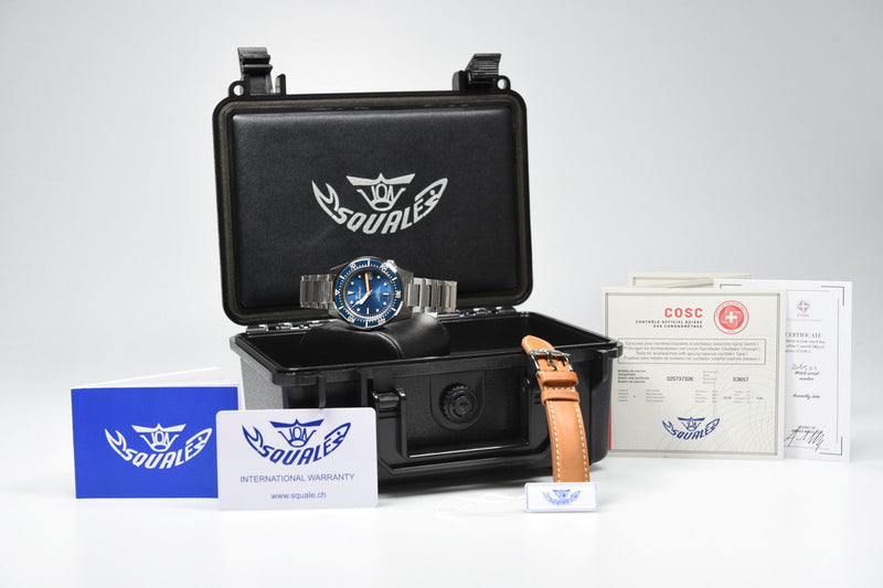 De Squale 50 Atmos COSC 1521 1521COSOCN.SQ20B (Pre-owned) is een horloge in goede staat en is nauwelijks gedragen en komt met de volledige set met doos en papieren (06/2025). Ook inbegrepen is een extra Squale leren band met gesp.