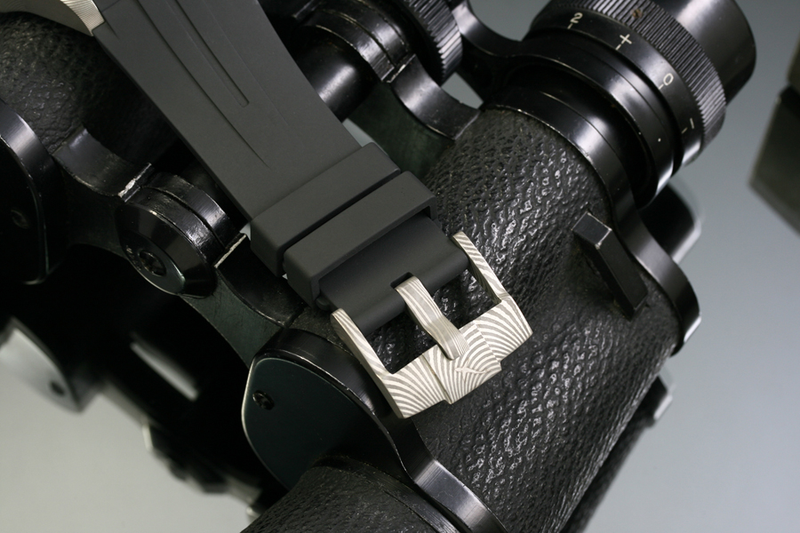 Onder de motorkap vindt u een automatisch beproefd Sellita SW200 uurwerk. De speciale wijzerplaat wordt beschermd door super domed saffierglas. De indrukkende waterdichtheid van 300 meter wordt mogelijk gemaakt door een heliumventiel dat u aan de zijkant van de kast kan zien. De 120-kliks lunette insert is van brons (wat een unieke patina krijgt bij dragen). De kast is gemaakt van damascus staal, wat een combinatie is van 304 en 316 staal, wat unieke patronen heeft, die u overal kan zien.