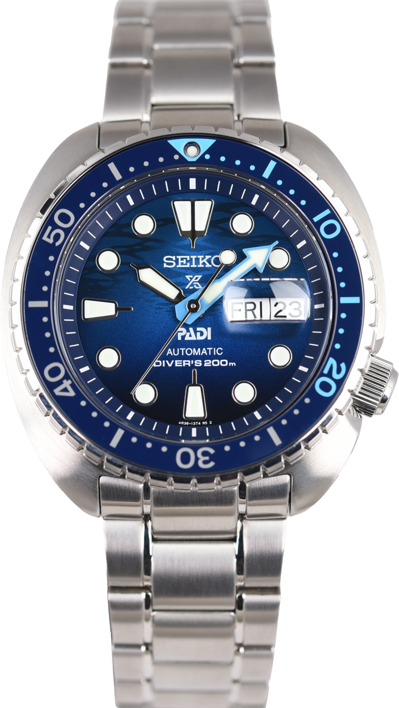 De Seiko Prospex Turtle PADI SRPK01K1 Special Edition (Pre-owned) is een horloge in prima staat met normale draagsporen en komt met de volledige set met doos en papieren (15/11/2024).