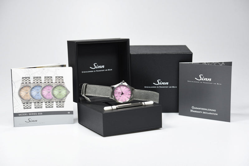 De Sinn 556 Mauve Limited Edition 556.0124 (Pre-owned) is een horloge in nieuwstaat en komt met de volledige set met doos en papieren (10/2025).
