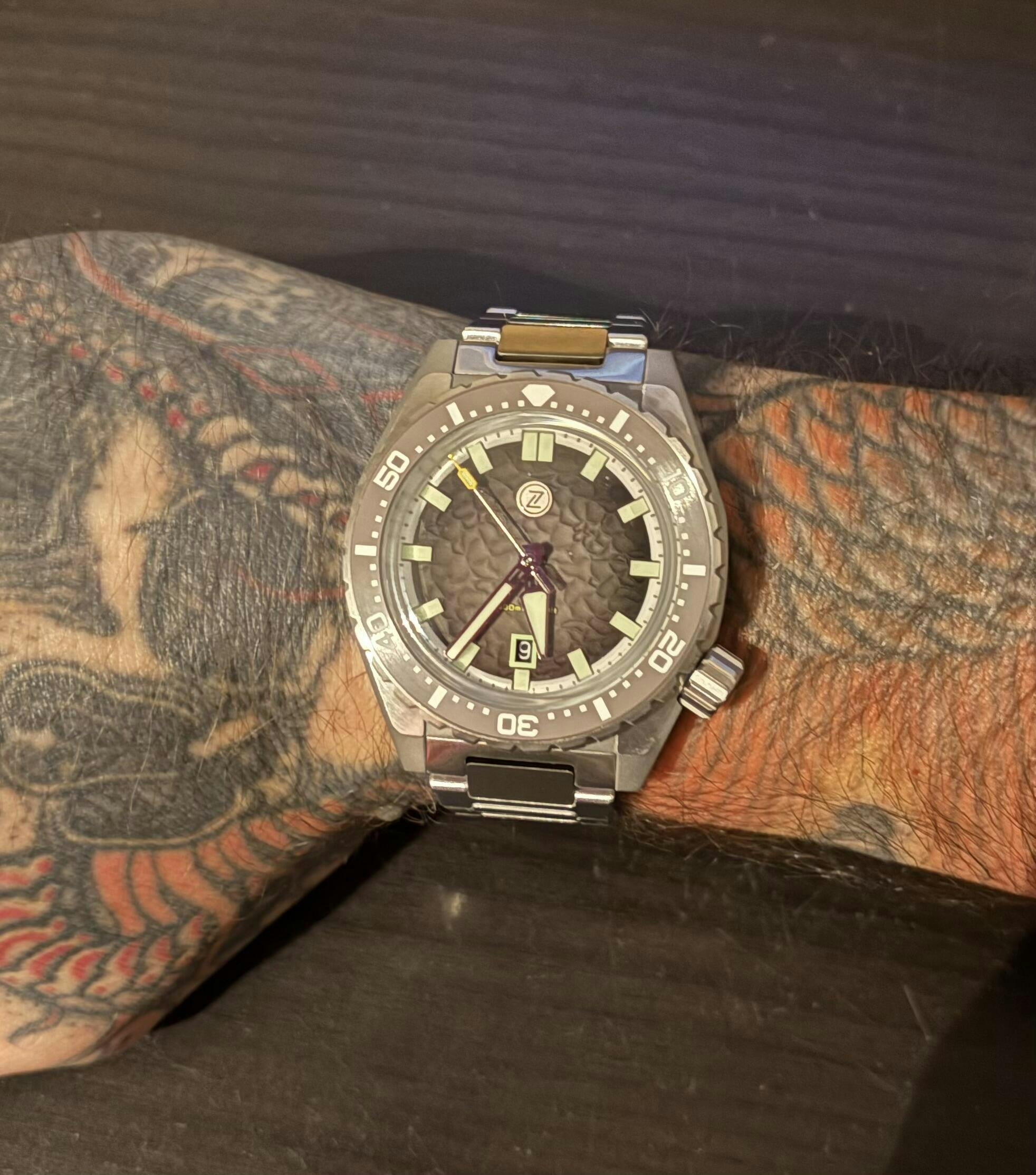 De Zelos Thresher Hammered Grey is een geweldig duikhorloge met een waterdichtheid van 500 meter. Onder de motorkap vindt u een Japans Miyota Cal. 9015 uurwerk. Zoals u gewend bent met Zelos zit de rest ook goed in elkaar: saffierglas, keramische lunette en een zeer fijne band met quick adjust gesp.