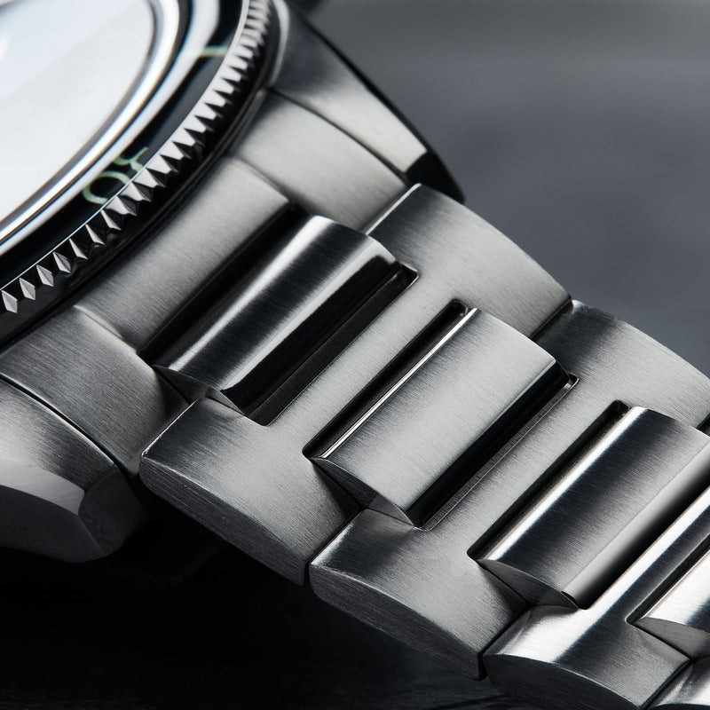 De acryl lunette is ook erg leuk door de gebolde vorm. Dat is ook tekenend voor de Fleuss serie: kleine, verfijnde details, die het horloge extra speciaal maken.